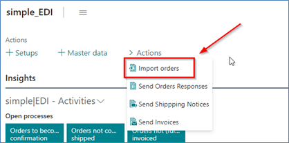 If you’ve prepared your data for the incoming and outgoing transactions, you can import the first sales orders in your system. Depending to your setup, this is done via job queue or manually. The manually import can be called from the role center: