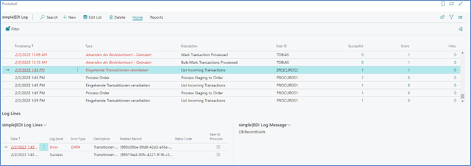 We recommend to switch to the Procuros portal to see, which error has occurred. There you’re also able to send this transaction again to your Business Central and to run the import-function once again.