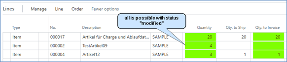 • Modified, if you have changed the order, mark it as “modified”. So you are able to ship and invoice partly, if you want.